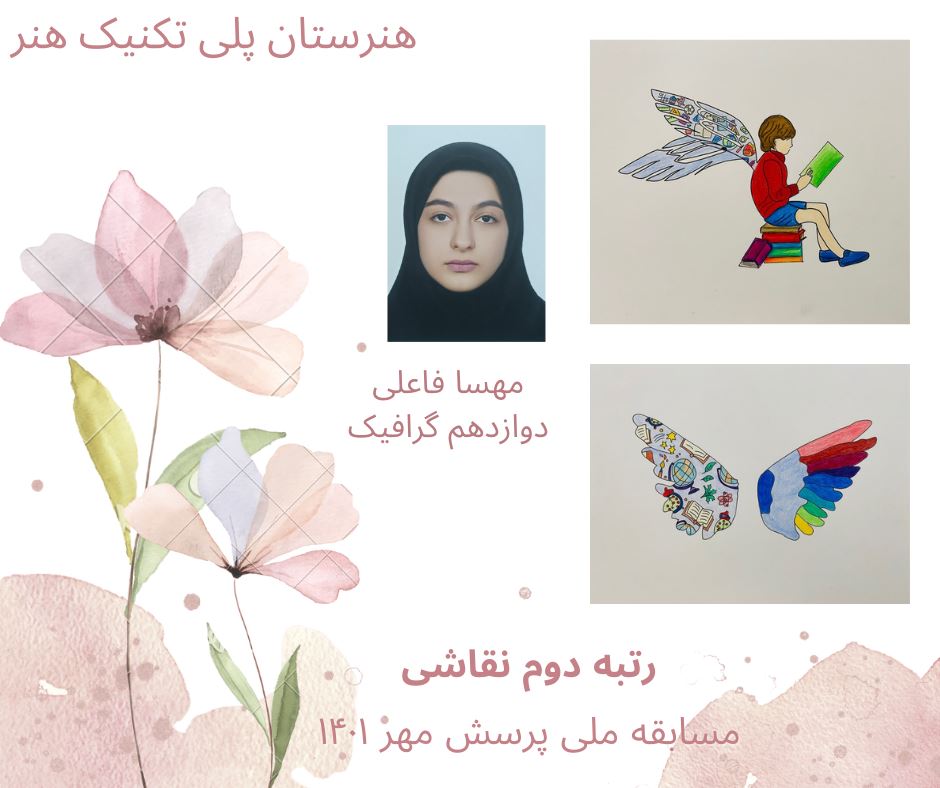 💐🎊💐🎊💐🎊💐🎊💐🎊💐🎊 باز هم افتخار آفرینی هنرجویان عزیز و هنرمند هنرستان پلی تکنیک هنر در مسابقه ملی « پرسش مهر » ⚜️ نتایج منتخبین منطقه: 🌸 هنرجو ستاره شاه محمدی رتبه اول رشته تصویرسازی 🌸 هنرجو پرنیان حاجی وند رتبه دوم رشته تصویرسازی 🌸 هنرجو فاطمه مقدسی رتبه سوم رشته تصویرسازی 🌸 هنرجو آتوسا رستگار رتبه اول رشته پوستر 🌸 هنرجو زهرا فاطمی رتبه اول رشته نقاشی 🌸 هنرجو آنیل اثنی عشری رتبه اول رشته نقاشی 🌸 هنرجو ریحانه ولی پور رتبه دوم رشته نقاشی 🌸 هنرجو مهسا فاعلی رتبه دوم رشته نقاشی 🌸هنرجو عسل اسماعیلی رتبه سوم رشته نقاشی 🌸هنرجو آلما امانی رتبه سوم رشته نقاشی با آرزوی موفقیت برای این عزیزان و تشکر ویژه از هنرآموزان گرامی، انشاءالله در مرحله استان نیز افتخار آفرین باشید.🙏🥰❤️ ❤️ هنرستان پلی تکنیک هنر ❤️
