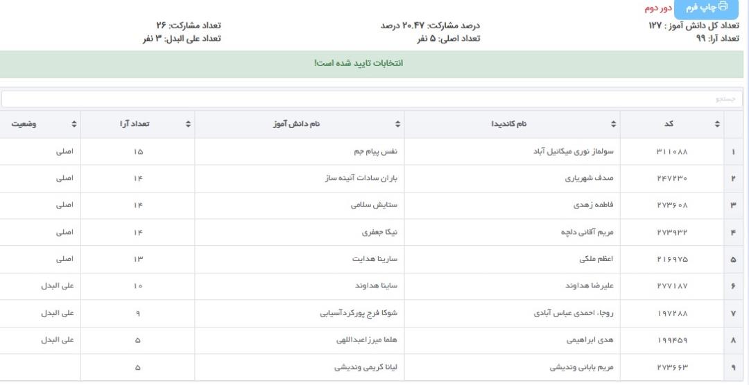 نتیجه نهایی انتخابات انجمن اولیاء و مربیان