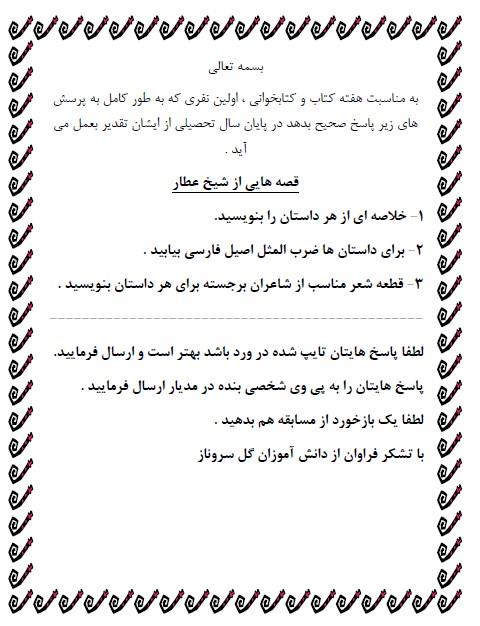 برگزاری مسابقه هفته کتاب و کتابخوانی